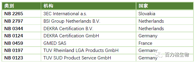 伴随着产品分类规则的调整,各类别产品对应的认证途径自然较原监管体系也有着很大的变化,其中最核心的变化点在于公告机构(Notified Body,NB)介入的增加,涉及产品包括部分A类和所有的B、C、D类。在整个IVD领域,涉及公告机构介入的产品数量从IVDD监管体系下的10%~20%增加至80%~90%。公告机构介入的增加,意味着绝大多数的体外诊断设备,在欧盟区的市场准入将是一个实质性的注册过程。截止至2022年5月1日,获得新版IVDR资质的医疗器械CE认证公告机构共7家,[3]名单如下: