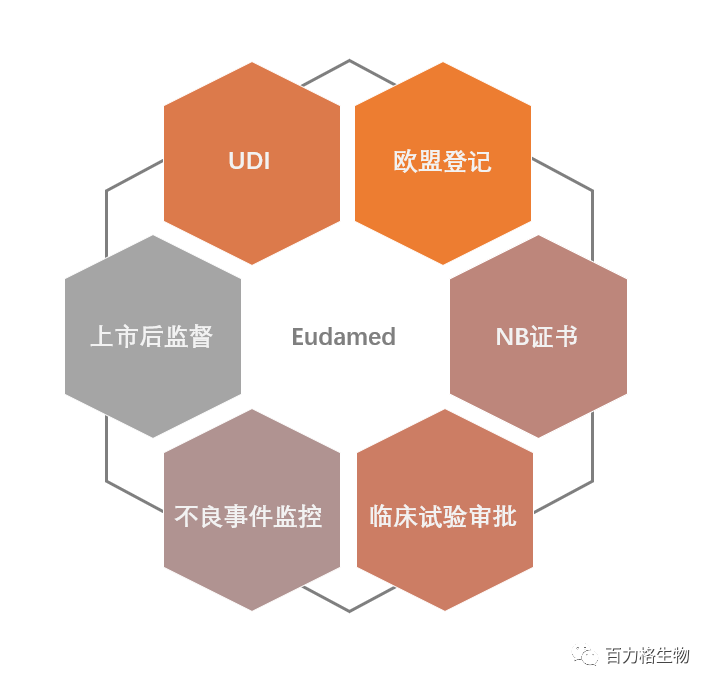 在IVDR的法规体系下,欧盟主管当局一个很重要的工作就是未来将要推出医疗器械数据库(Eudamed),该数据库涵盖从产品上市前审批到上市后监管中的很多重要信息。