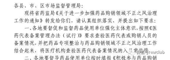 《通知》要求加强医药代表备案管理,要求省内各涉药单位应履行对医药代表的备案和管理职责,在 2022 年 9 月 30 日之前,按照《医药代表备案管理办法(试行)》要求,将相关人员信息上报“国家医药代表备案平台”并及时维护更改信息,并按要求公示。未经备案和医疗机构批准的企业人员不得在医疗机构进行药品推广活动。